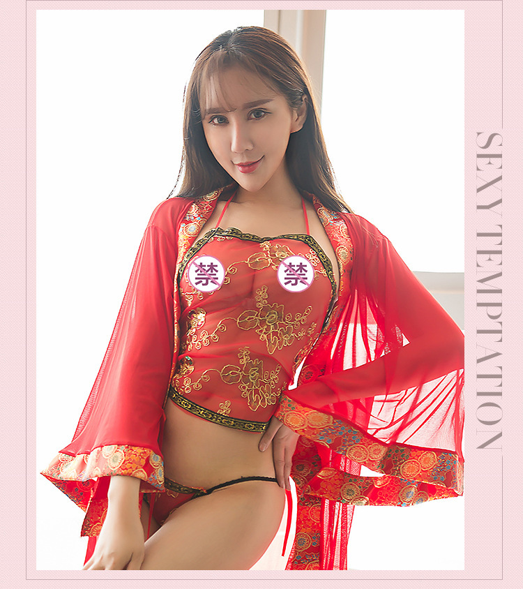 唐装外套配肚兜情趣内衣套装女古典肚兜性感性感刺绣古装睡袍1318